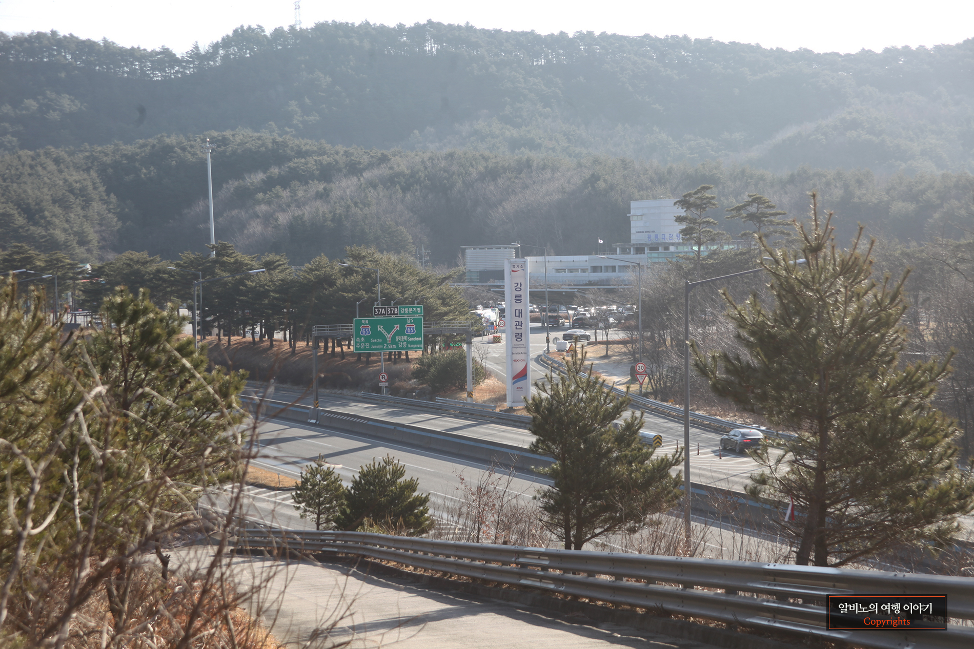 대관령 휴게소 부근을 도보로 걸어서 가며 고속도로위를 달리는 차들을 본다.