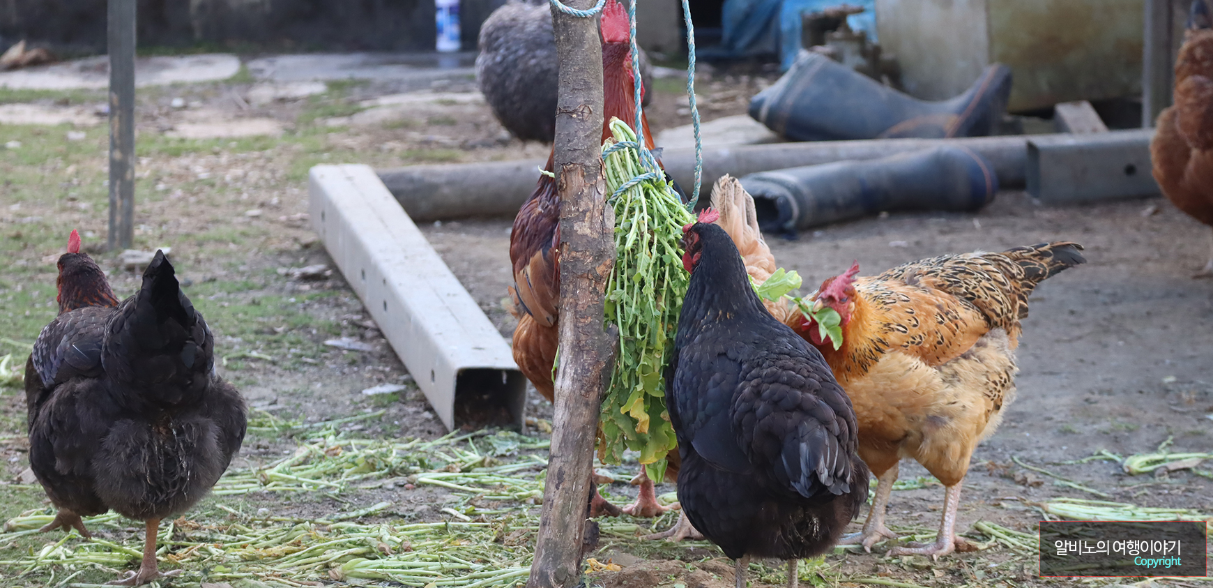 닭의 생육상태가 아주 우수한 것 같다. 닭의 생김새는 한국과 다를바가 없다.