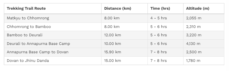 ■ 전체구간: 네팔 포카라 / Tikhedhungga(팅게둥가)- Ulleri(울레리)- Ghorepani(고레파니)- Poon Hill(푼힐 전망대)- Deurali(데우라리)- Chuile(추일레)- Chhomrong(촘롱)- Sinuwa(시누와)- Bamboo(밤부)- Dobhan(도반)- Himalaya(히말라야 롯지)- Deurali(데우랄리)- Machhapuchhre Base Camp(마차푸차레 베이스캠프)- Annapurna Base Camp(안나푸르나 베이스캠프)