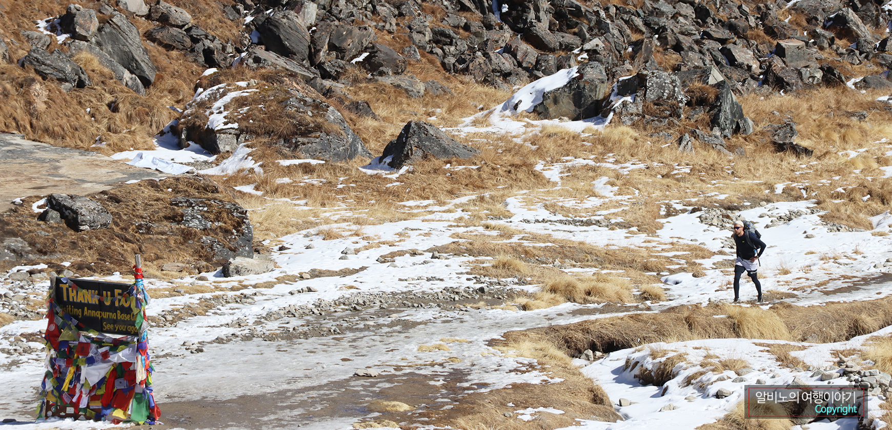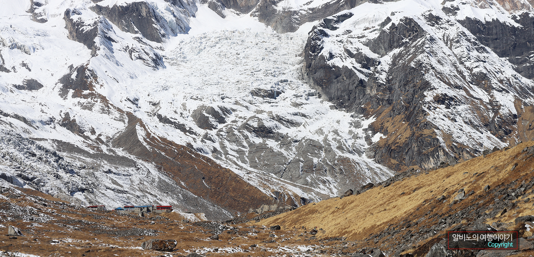 ABC의 롯지를 포함해 규모가 그렇게 크지 않았다. Sabin 이야기는 전문 산악인들의 베이스캠프는 여기보다 높은 곳에 자리를 잡는다고 한다. 아무튼 TV에서만 봐 왔던 안나푸르나 가 눈앞에 펼쳐졌다.