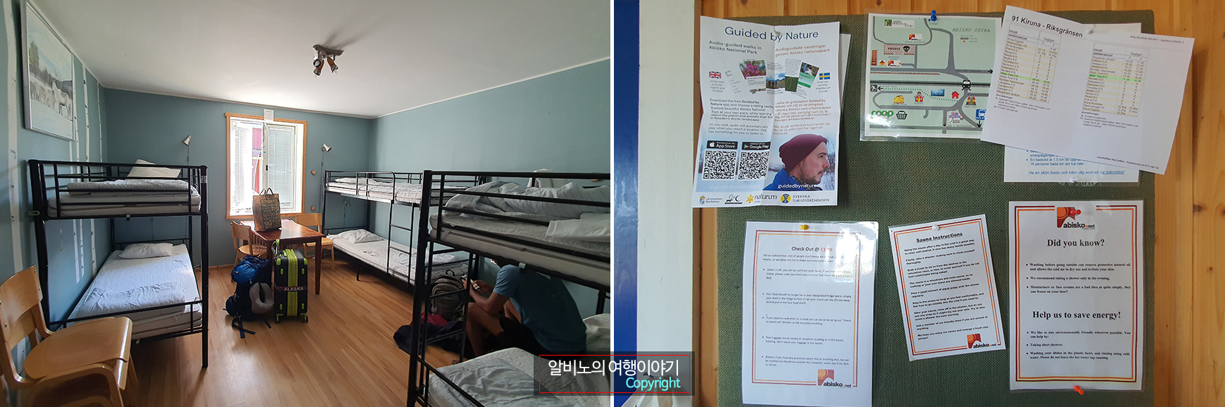 ABISKO(아비스코)에서  NIKKALUOKTA(니칼루옥타)까지 가면서 쉬어야 하는 캐빈의 상황은 거의 비슷하다.