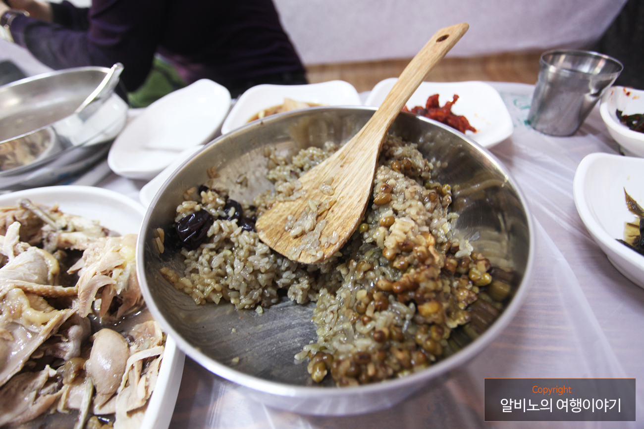 특히 백숙 대신에 나온 녹두를 섞어 만든 찹쌀밥이 일품이었다. 가격은 40,000원.
