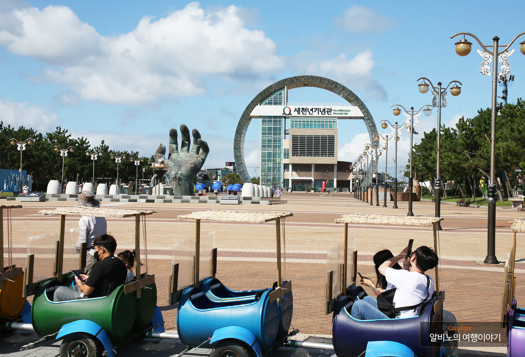 바다에는 오른손이, 육지 쪽 광장에 있는 손은 왼손이다.