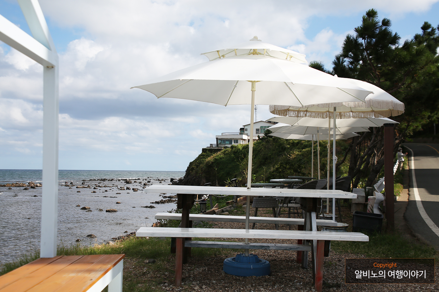 들어가 보지는 못했지만 분위기가 괜찮은 것 같다. 파라솔과 바다, 그리고 건물이 잘 어울린다.