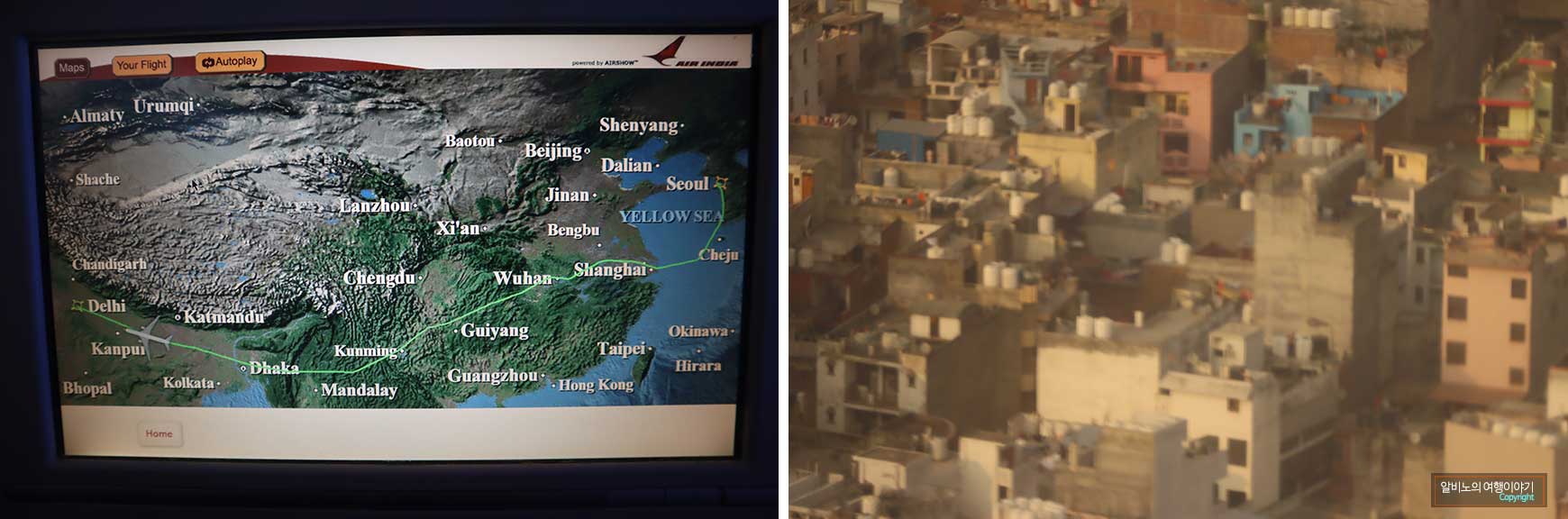 ▲사진 우) 인도 상공에서의 델리( 엔진 열 관계로 화질 미흡)