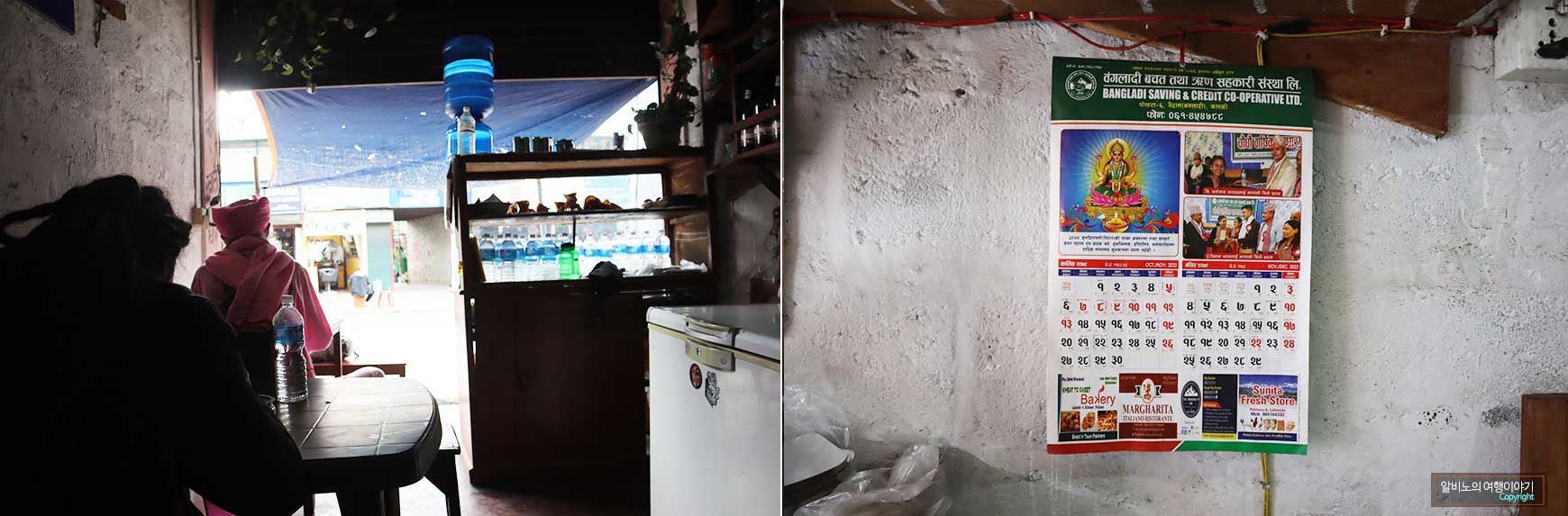 ▲식당 내부와 신기한 네팔 달력